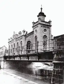 « Hier a eu lieu l'inauguration de la synagogue nouvellement construite dans le style mauresque-byzantin, après une belle cérémonie préliminaire la veille au soir. Cela fait maintenant presque cinq siècles (1384) que la synagogue de l'époque a été transformée en chapelle chrétienne, après que la nombreuse communauté juive ait été exterminée en 1349 sur dénonciation d'une servante qui venait de traverser le ghetto et qui aurait entendu dire par les juifs qu'ils avaient conspiré pour attaquer et tuer les chrétiens ( !!!).