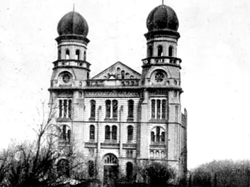 En 1887, à la suite de l'augmentation importante du nombre de fidèles, la communauté fait construire à l'emplacement de l'ancienne synagogue, après achat de plusieurs parcelles avoisinantes, un nouveau bâtiment dont les travaux s'achèveront en 1889. La nouvelle synagogue est construite sous forme basilicale, en style néo-baroque avec de nombreux ajouts mauresques. La façade principale côté ouest, est encadrée de deux tours surmontées chacune par un dôme en forme de bulbe reposant sur des trompes. En longueur, le bâtiment s'étend sur sept travées, toutes percées de hautes fenêtres. Le bâtiment de trois niveaux, dont le dernier en retrait, est recouvert d'un toit à double pente. À l'arrière du bâtiment, côté est, se trouve une large abside semi-circulaire, couvrant toute la largeur. Les murs extérieurs sont en briques profilées vernissées. À l'intérieur, une galerie réservée aux femmes courent sur trois côtés de la salle de prière.