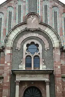 La façade comporte l’inscription Que ce lieu est redoutable ! מַה-נּוֹרָא, הַמָּקוֹם הַזֶּה (Genèse 28:17)