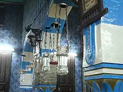 Cependant, avec les rénovations et les modifications postérieures du bâtiment, le nombre de fenêtres a augmenté. Les modifications postérieures sont particulièrement évidentes du côté nord du bâtiment où elles ont provoqué des changements par rapport au plan symétrique original du bâtiment. La téva est située sous la claire-voie (à l'extrémité occidentale de la salle de prière). Toutefois, la dernière colonne, côté est, est absente et n'a probablement jamais été construite. La tradition locale y voit un signe du souvenir de la destruction du temple de Jérusalem. En outre, on affirme que le bâtiment ne devrait ne jamais être terminé car « rien n'est parfait excepté la divinité ». Les bancs sont placés autour de la téva. Les murs intérieurs sont décorés de faïences à motifs décoratifs bleus, blancs et bruns à la différence des murs extérieurs qui sont peints en blanc. Une niche en dessous de l'arche sainte indique l'endroit où le corps de la jeune fille aurait été trouvé : on le connaît comme « la caverne de la fille ».