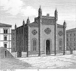 La synagogue de la Tempelgasse est érigée selon les plans de l'architecte Ludwig Förster entre 1854 et 1858. La consécration se déroule le , avec un discours d'Adolf Jellinek (en), le premier rabbin de la synagogue, de tendance libérale. Le premier chantre est J. Goldstein. À partir de 1867, officie également Moritz Güdemann, de tendance conservatrice, puis à partir de 1894, Adolf Schmiedl dont les sermons jouissent d'une très forte popularité. Comme autres rabbins, on peut citer Elieser David de Düsseldorf, Max Grünwald à partir de 1913 et Israel Taglicht à compter de 1932.