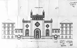 Förster accentue le style oriental en ajoutant un certain nombre de tours élancées, sur la façade ainsi que sur les côtés du bâtiment, séparées par une corniche avec des créneaux orientaux. Des ouvertures semblables aux médaillons de style islamique, remplacent la traditionnelle rosace que l'on trouve dans les églises. La façade est décorée de briques en terre cuite de couleur rouge et jaune. À l'intérieur, de nombreuses arches lobées et des motifs polychromatiques amplifient l'aspect oriental.