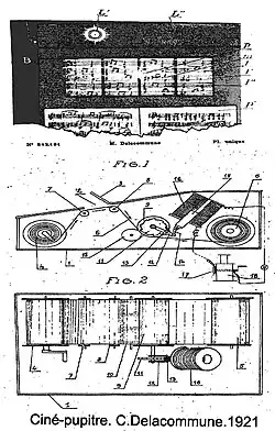 - ↑ Delacommune, Charles Eugène. Procédé et dispositif permettant la synchronisation d'une projection cinématographique et de la parole I.N.P.I.. République française. Brevet d’invention no 542181 (A).16/02/1921