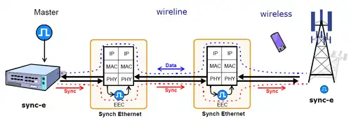 La recommandation G.8262/Y.1362 (publiée en , amendée en 2008 et 2010) de l'UIT pour le SyncE définit les caractéristiques de synchronisation des EEC ( Ethernet Equipment slave Clock)[4].