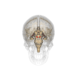 Vue 3D des corps mamillaires (en rouge).