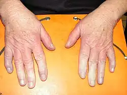 - ↑ Chikura B, Moore T, Manning J, Vail A, Herrick AL, Thumb involvement in Raynaud’s phenomenon as an indicator of underlying connective tissue disease, J Rheumatol, 2010;37:783-786