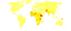 Selon une estimation de l'Organisation mondiale de la santé (OMS), on a dénombré en 1995 quelque 12 millions de nouveaux cas de syphilis dans la population adulte mondiale[24]. Le plus grand nombre de cas répertoriés sont situés en Asie du Sud et du Sud-Est, suivie par l'Afrique subsaharienne.