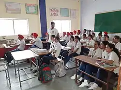 La politique de l'éducation est préparée par le gouvernement central au niveau national et par les États au niveau étatique. La politique nationale sur l'éducation de 1986 cherche à intégrer la sensibilisation à l'environnement, l'enseignement des sciences et de la technologie et l'introduction d'éléments traditionnels tels que le yoga dans le système d'enseignement secondaire indien[32]. Une caractéristique de l'enseignement secondaire de l'Inde est l'accent mis sur la formation professionnelle [33]. Une nouveauté importante est l'extension de l'aide à l'enseignement secondaire sous la forme du Rashtriya Madhyamik Shiksha Abhiyan[34], plus récente initiative du gouvernement de l'Inde pour atteindre l'objectif d'universalisation de l'enseignement secondaire. Il vise à étendre et à améliorer les normes de l'enseignement secondaire jusqu'à la classe 10 [35].