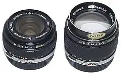 Sur les objectifs de la série OM, la bague de réglage du diaphragme est située à l'avant du fût de l'objectif pour l'éloigner du réglage de la vitesse d'obturation, qui est une bague située sur le corps de l'appareil concentriquement à la monture. Les objectifs OM possédent également un bouton de contrôle de la profondeur de champ situé sur l'objectif, contrairement à la plupart des autres systèmes reflex, où le bouton est situé sur le boîtier de l'appareil.