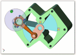 Piston(rouge), bielle(bleu) et vilebrequin (vert).