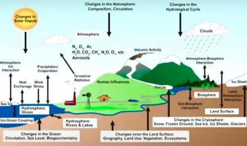 Le système climatique est l'ensemble des interactions entre l'atmosphère, l'océan, la cryosphère, la lithosphère et la biosphère de la Terre, qui sous l'effet du rayonnement solaire détermine le climat de la planète[1].