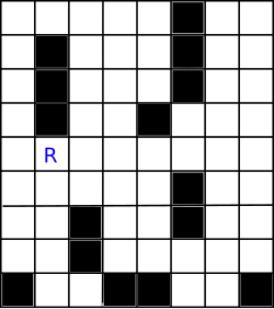 Cet exemple présente un système de classeurs de type Michigan très simple. Considérons un environnement constitué de cases pouvant être remplies ou vides. Un robot évoluant dans cet environnement peut se déplacer sur une des cases adjacentes si celle-ci est vide.