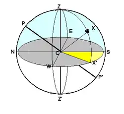 - 1 2 3 4 « Repérage dans l'espace »(Archive.org • Wikiwix • Archive.is • Google • Que faire ?), sur ac-nice.fr, Comité de Liaison Enseignants et Astronomes, Académie de Nice, diapositives 4-5.