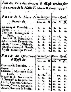 Prix du beurre et des œufs à Paris le 8 janvier 1779, Journal de Paris, 9 janvier 1779, p. 35.