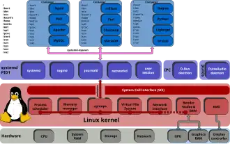 systemd est basé sur quelques dizaines de binaires gérant l'ensemble du système de boot, et quittant ainsi la philosophie UNIX du KISS[3].