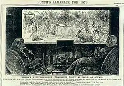 Avant la description du téléphonoscope par Robida en 1883, la rumeur attribuait cette invention, sous le même nom, à Thomas Edison. Le caricaturiste George du Maurier avait ainsi publié un dessin intitulé Edison's telephonoscope dans l'almanach 1879 du magazine Punch. On y voyait un couple, dans un salon à Londres, en visioconférence avec leur fille jouant au tennis à Ceylan[8].