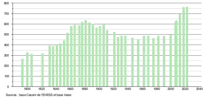 (Sources : Ldh/EHESS/Cassini jusqu'en 1999[29] puis Insee à partir de 2006[30].)
