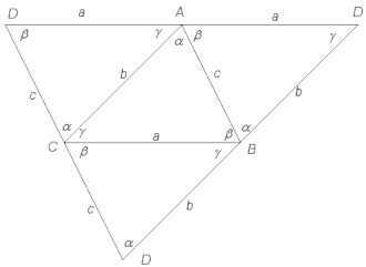 D'après l'inégalité triangulaire sur les angles arrivant à un même sommet, , donc : les angles des faces sont strictement aigus [2],[3].