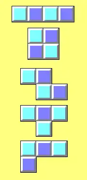 5 tétrominos colorés en carrés clairs et foncés.