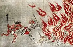 André Leroi-Gourhan note des points communs entre des créatures à têtes animales dans la mythologie chinoise et la mythologie japonaise : Bato Kanzeon, soit « Kanzeon à la Tête de cheval », est une divinité bouddhique réputée guérir les maladies d'origine maléfique[1]. Le Dieu de la mort Yama peut être représente ou décrit avec une tête de buffle ou de taureau[1]. Il postule qu'une synthèse initiatique a eu lieu au Japon, entre bouddhisme et shintoïsme[1].