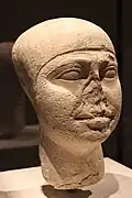 Kahotep | Ancien Empire | Ägyptisches Museum, Berlin (Berlin 16455)[29]. | Tête de réserve de Kahotep trouvée à Abousir. |