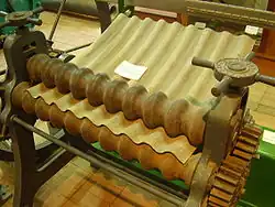En donnant aux nervures une profondeur plus importante que le pas transversal d'espacement[8], un industriel de Barmen, Carl Ludwig Wesenfeld[9], fit vers 1875 de la tôle ondulée un matériau de construction adapté aussi bien aux machines qu'au bardage des grandes halles industrielles.