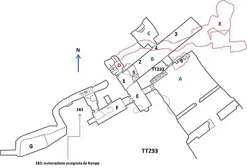 - (en) Cet article est partiellement ou en totalité issu de l’article de Wikipédia en anglais intitulé « TT233(tomb) » (voir la liste des auteurs).