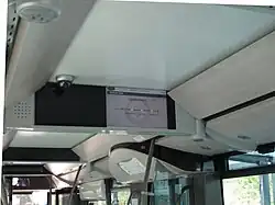 - Intérieur d'un bus : vue de l'avant du bus, de l'écran d'information et d'une caméra de surveillance.