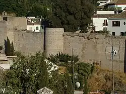 À la fin du siècle, la majeure partie de la colline est déjà urbanisée et ceinte d'une muraille en pierre de taille dont il subsiste encore une partie partiellement intégrée aux édifices du quartier. Quatre portes donnent accès à la capitale, Bib Cieda (connue auujourd'hui comme Puerta Nueva ou arc de las Pesas[7]), Bib Caxtar y Bib Elbis, sur le côté nord de la ville, donnant sur la banlieue de l'Albaicín, y Bib Albonud à l'est[8].
