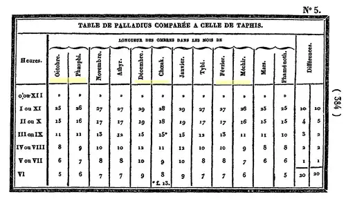L'étude se poursuit avec une comparaison entre la table de Taphis et celle de Palladius, permettant de constater leur facture équivalente ainsi que leur « imprécision ».