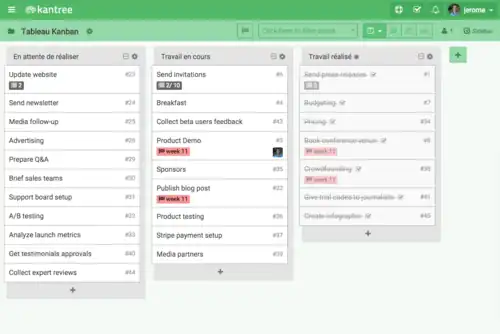 Un tableau kanban est un outil de travail permettant d'appliquer la méthode kanban à un flux de travail.