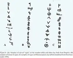 - ↑ OWENS, GARETH A.. "BALKAN NEOLITHIC SCRIPTS", Kadmos vol. 38, no. 1-2, 1999, pp. 114-120