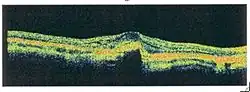 La tache de Fuchs est une maladie dû à une forte myopie. Une hémorragie maculaire survient à la suite d'étirements de la rétine, souvent avec la formation de néovaisseaux, d’où une perte de l’acuité visuelle.