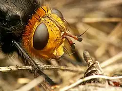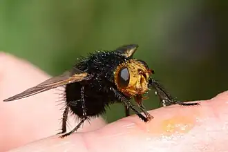 | Tachina grossa pompant du miel | Tachina grossa en gros plan |