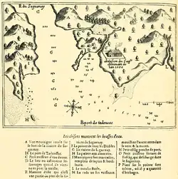 Après l'échec des établissements de Charlesbourg-Royal et de Floride, Tadoussac devint la première colonie française pérenne en Amérique du Nord à la suite de l'installation d'un poste de traite de la fourrure[13]. En effet, en 1599, le roi Henri IV accorda le monopole du commerce de la fourrure à Tadoussac à François Dupont-Gravé et Pierre de Chauvin[14], qui fondèrent, sous l'autorité de Pierre Dugua de Mons, l'établissement en 1600. À cette époque, la région de Tadoussac était habitée durant les mois d'été par une tribu innue (dite montagnaise) dont le chef était Begourat.