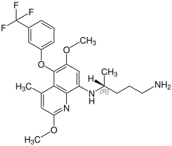| Nom UICPA | N-[2,6-diméthoxy-4-méthyl-5-[3-(trifluorométhyl)phénoxy]quinolin-8-yl]pentane-1,4-diamine |