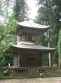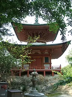 ![]() | Tahōtō de Kongō Sanmai-in (金剛三昧院多宝塔)[81],[82] | 1223 | Kōya | Préfecture de Wakayama | 3 ken, toit en cyprès du Japon ; à l'intérieur se trouvent des statues en bois de l'époque de Kamakura représentant les cinq Dhyani Bouddhas assis | Trésor national |