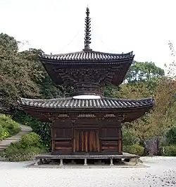![]() | Eifuku-ji (叡福寺多宝塔)[71] | 1652 | Taishi | Préfecture d'Osaka | 3 ken, toit de tuiles | BCP |