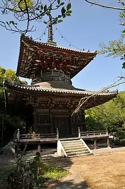 ![]() | Chōhō-ji (長保寺多宝塔)[87],[15] | 1357 | Kainan | Préfecture de Wakayama | 3 ken, toit de tuiles ; démonté pour réparations en 1927 | Trésor national |