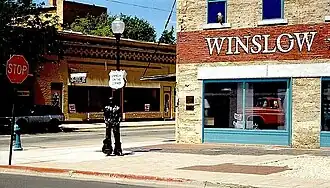- ↑ (en) Standin' on the Corner Park, Winslow, Arizona - Roadsideamerica.com
