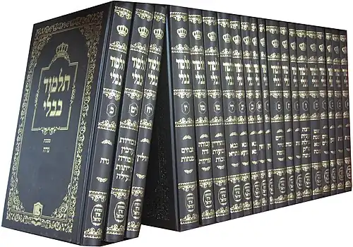Le Talmud existe en deux versions qui se complètent. La première a été compilée au IIe siècle dans les académies talmudiques de la terre d'Israël, notamment en Galilée et elle est appelée Talmud de Jérusalem en souvenir de la ville (alors fermée aux Juifs par les Romains) ; cette première version couvre l'ensemble des traités de la Mishna, est plutôt concise et des parties en ont été perdues. La seconde version a été compilée au VIe siècle dans les académies de la diaspora du Moyen-Orient, d'où son nom de Talmud de Babylone en souvenir de l'exil à Babylone : il est divisé en six ordres, les shisha sedarim, en abrégé sha’s, et est très étudié dans l'ensemble du judaïsme rabbinique.