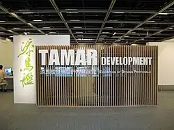Le gouvernement a également décidé de supprimer une galerie d'exposition du projet. En 2004, il avait promis au conseil de développement du commerce[8] qu'il serait en mesure de louer le terrain comme lieu temporaire pour des méga-foires deux fois par an, pour un total de trois ans. À l'origine, la Hong Kong Gifts & Premium Fair[9] et la Hong Kong Electronics Fair (en)[10] devaient organiser des expositions sur le site de Tamar une fois par an, avec l'intention de devenir la plus grande foire d'approvisionnement d'Asie. Le gouvernement a décidé de supprimer l'utilisation des expositions afin de réduire l'intensité du développement du site et d'atténuer les effets du projet sur les infrastructures de transport.