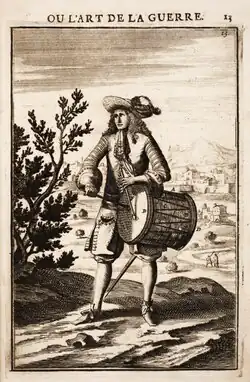 Les premiers tambours de l'histoire militaire de la France apparaissent en 1534 dans les légions de François Ier sous le nom de tambourins. Il en est prévu quatre par millier d'hommes. Ils constituent la musique de troupe de l'infanterie avec les fifres et plus tard, sous Louis XV, les clarinets. Les bandes françaises, qui succèdent aux légions, ont un ou deux tambours par bande. Sous Henri II, chaque bande a un tambour principal appelé tambour colonel qui fait porter sa caisse par un sous-tambour. Après la création des régiments d'infanterie française, le nom de « tambour » remplace celui de « tambourineur ». En 1667, l'ordonnance de Saint-Germain prévoit un tambour par compagnie en temps de paix et deux en temps de guerre. L'ordonnance du prescrit que les tambours feront table commune et dormiront ensemble dans le quartier, mesure renouvelée par l'arrêt du 29 floréal an VII. Cependant, à partir de 1792, on les mettra plutôt à la table ordinaire de leur compagnie[1].