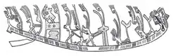 - Figuratives : sur le tympan et le haut de la base du tambour, ces décorations sont très vivantes, avec faune ou flore diversifiées et des humains souvent empanachés (musiciens, danseurs ou guerriers), entrevus parfois dans leurs maisons ou à bord de leurs bateaux. Ces scènes d'une grande originalité n'ornent cependant pas tous les tambours.