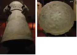 La famille des bronzes cérémoniels, vases ou urnes, cloches ou tambours, fut élaborée à partir des qualités reconnues du nouvel alliage de cuivre : beauté, sonorité, adaptabilité, solidité, pérennité sinon éternité. La fonte du bronze maîtrisée, après les pointes de flèche et les chaudrons réussis, les artisans vont développer, de fin BCE au CE, la production d‘objets cérémoniels dont la parenté est visible, qu'il s'agisse de leurs décorations ou de leurs usages, souvent musicaux. Ci-contre, comparées à un tambour vietnamien de référence (Sông Đà), des trouvailles de « cloche » et « d'urne » faites au Cambodge, ou encore de « bassine/tambour » au Vietnam, attestant d'une grande famille de bronzes cérémoniels.