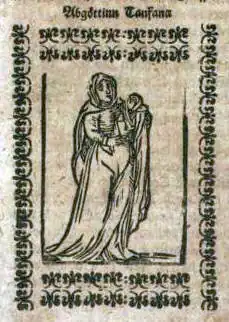 Un timbre trouvé à Ommen, daté de 1336, montre une figure féminine présumée être Tanfana avec un sapin, un symbole du soleil, un félin et un oiseau. Le timbre représente le mariage de Tan en tant que déesse de la lune avec le soleil. Dans ce mythe, Tan devient la déesse mère. Cette image pourrait être une variante de la déesse carthaginoise Tanit, souvent représentée par un symbole solaire, un croissant de lune et un groupe de serpents à la main. Les serpents symbolisent l'orbite du soleil et de la lune dans le ciel.
