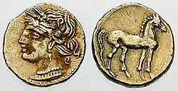 Visage de Tanit sur une piece de monnaie cathagénoise (350 avant.J.C) | |