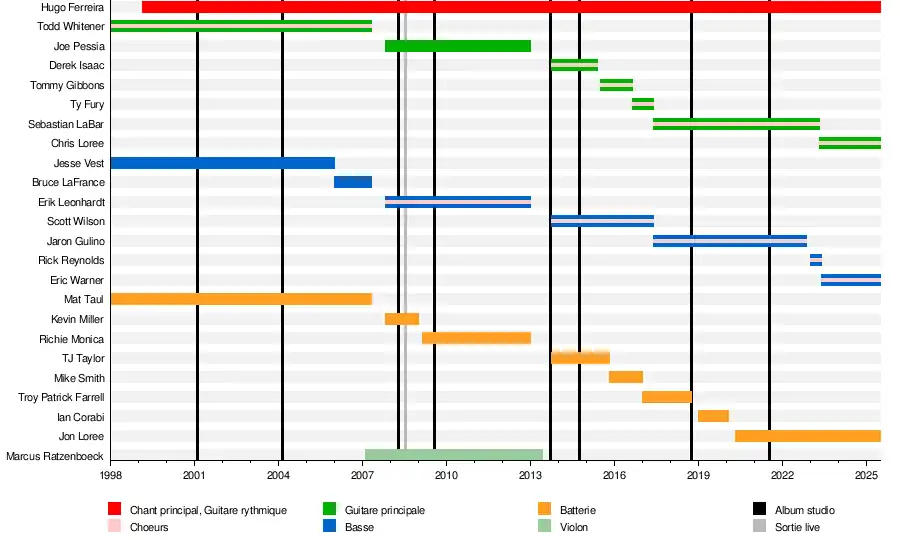 - Hugo Ferreira - chant principal, guitare rythmique (depuis 1999), basse, claviers (session 2013 uniquement)