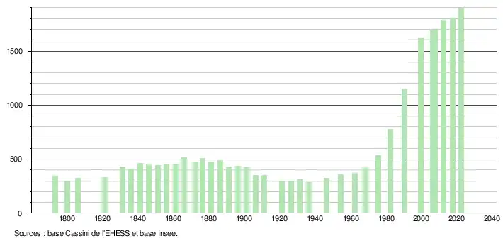 - ↑ Fiches Insee - Populations de référence de la commune pour les années 2006, 2007, 2008, 2009, 2010, 2011, 2012, 2013, 2014, 2015, 2016, 2017, 2018, 2019, 2020, 2021 et 2022.