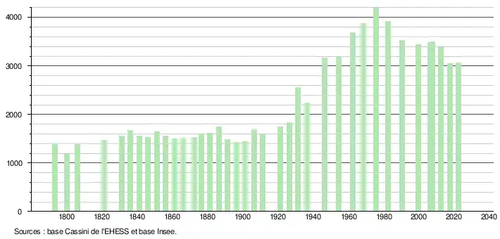 3 060 hab. (2022 en évolution de −2,49 % par rapport à 2016)